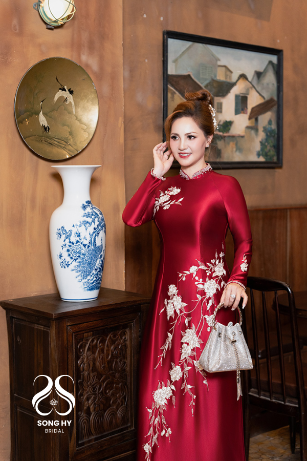 Để tôn vinh vai trò của các bậc sinh thành, áo dài mẹ thêu tay được xem là lựa chọn lý tưởng bởi vẻ đẹp tinh xảo, sang trọng và mang đậm dấu ấn truyền thống.