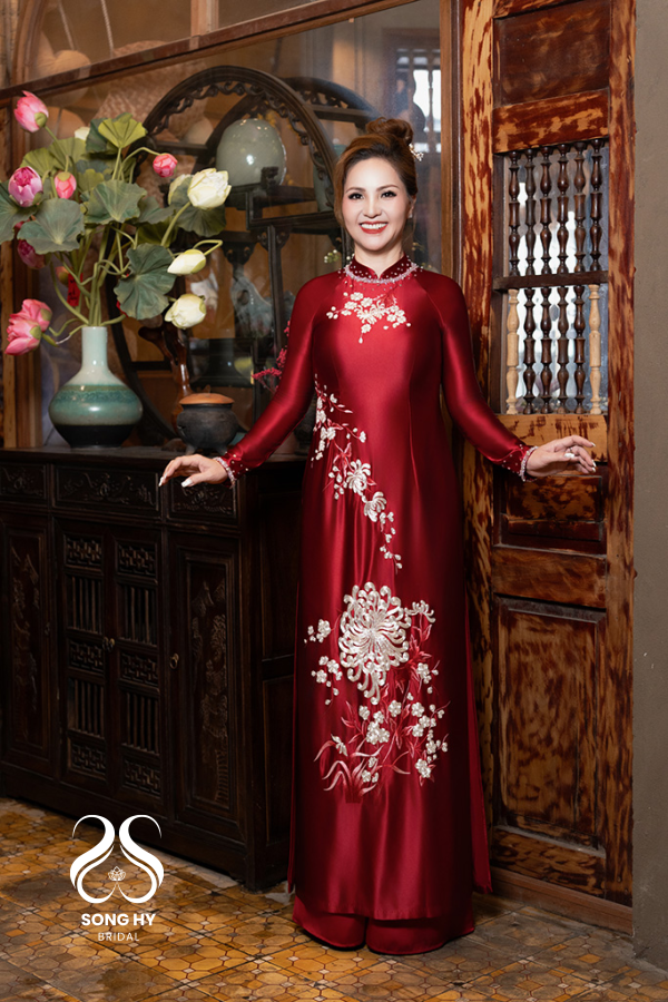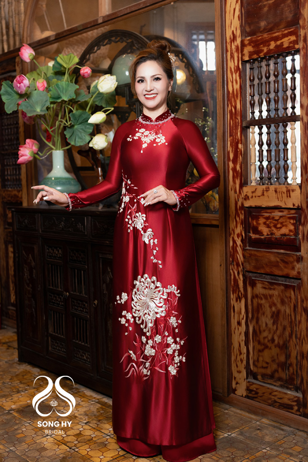 Để tôn vinh vai trò của các bậc sinh thành, áo dài mẹ thêu tay được xem là lựa chọn lý tưởng bởi vẻ đẹp tinh xảo, sang trọng và mang đậm dấu ấn truyền thống.